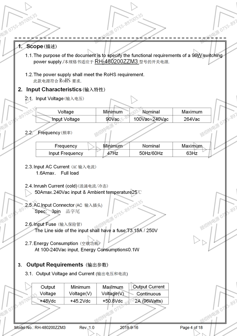 電源規格書