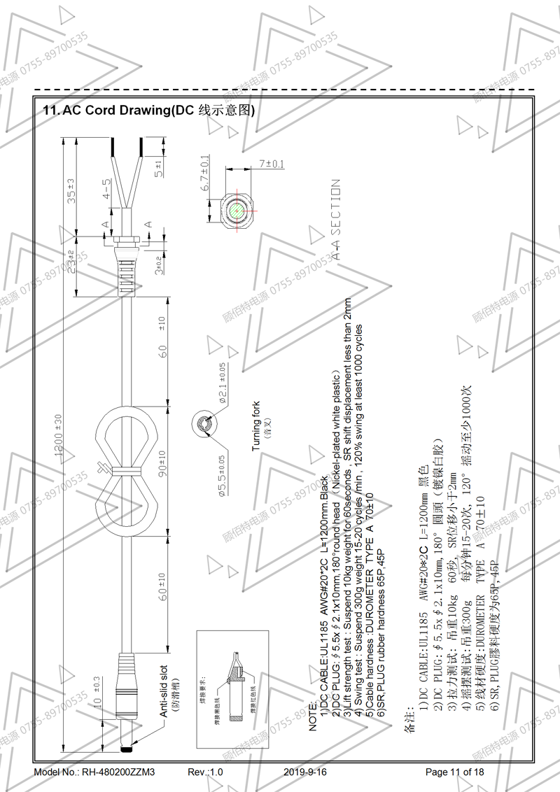 19V3.5A電源適配器規格書