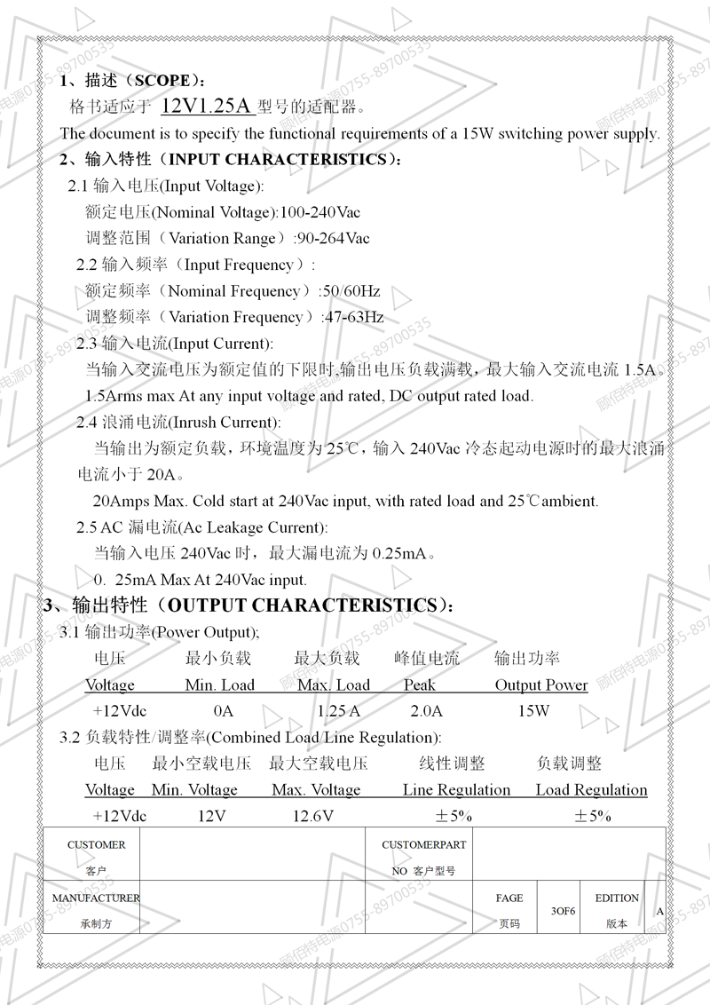 12V1.25A電源適配器規(guī)格書(shū)(桌面式)