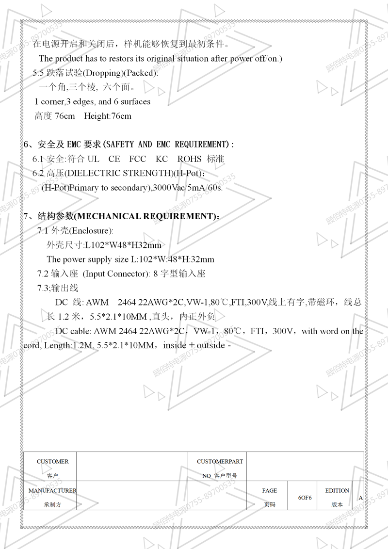 24V6A電源適配器帶PFC電路規(guī)格書(shū)(新模具)